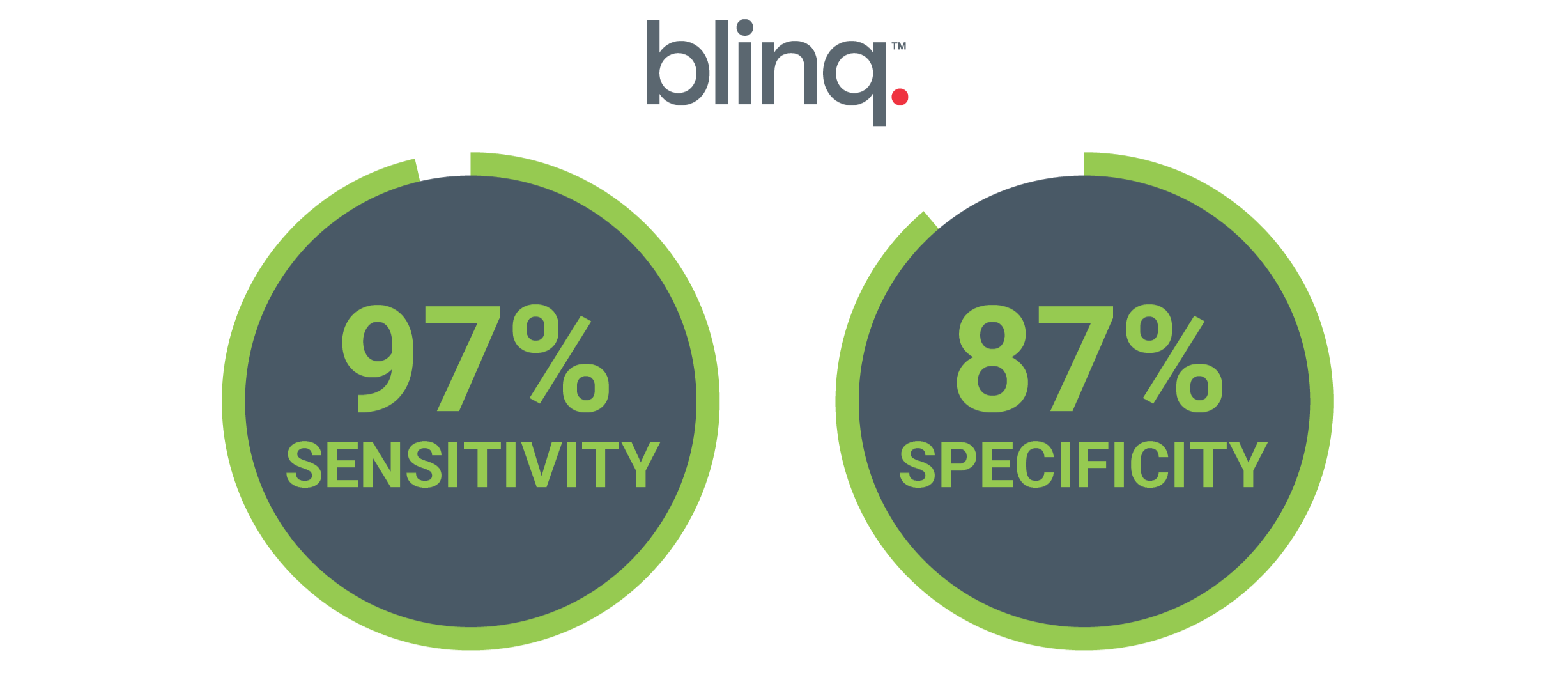 In clinical studies, Blinq. has demonstrated approximately 97% sensitivity and 87% specificity for detection of amblyopia and strabismus. High sensitivity provides strong pass assurance, while high specificity helps reduce the cost and burden of over-referrals.