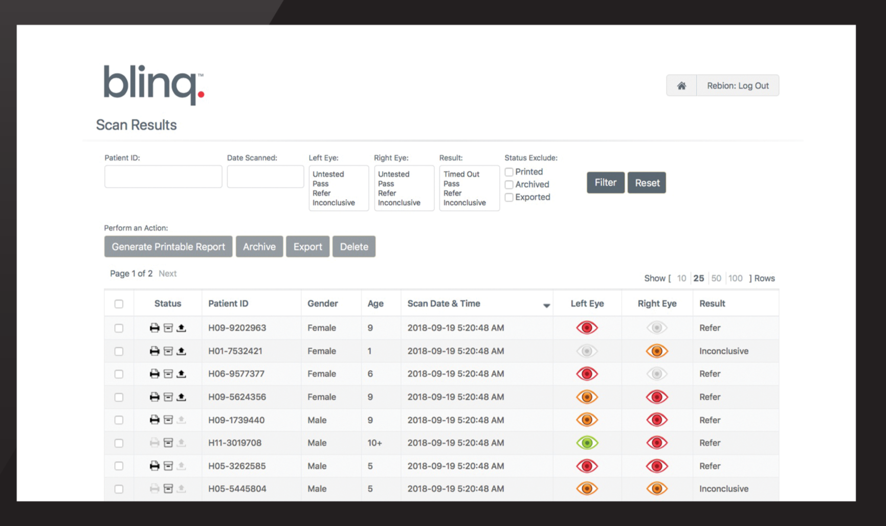 Rebion’s Blinq. Scan Results Data
